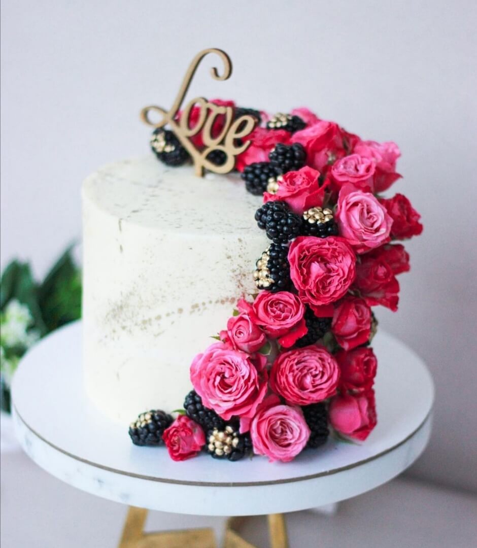 Ягоды и розы - главная изюминка декора этого тортика (помимо бесподобного вкуса, естественно)